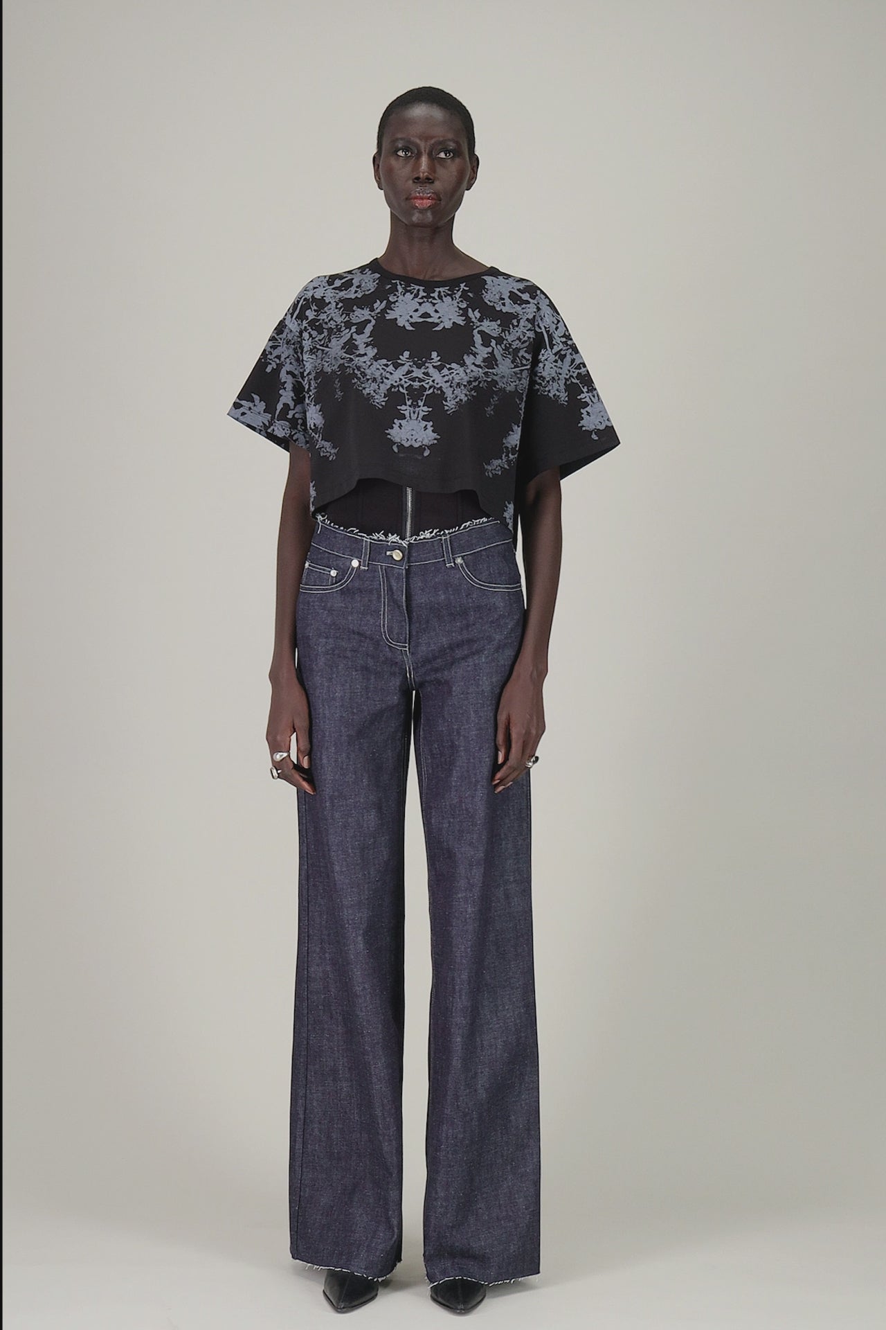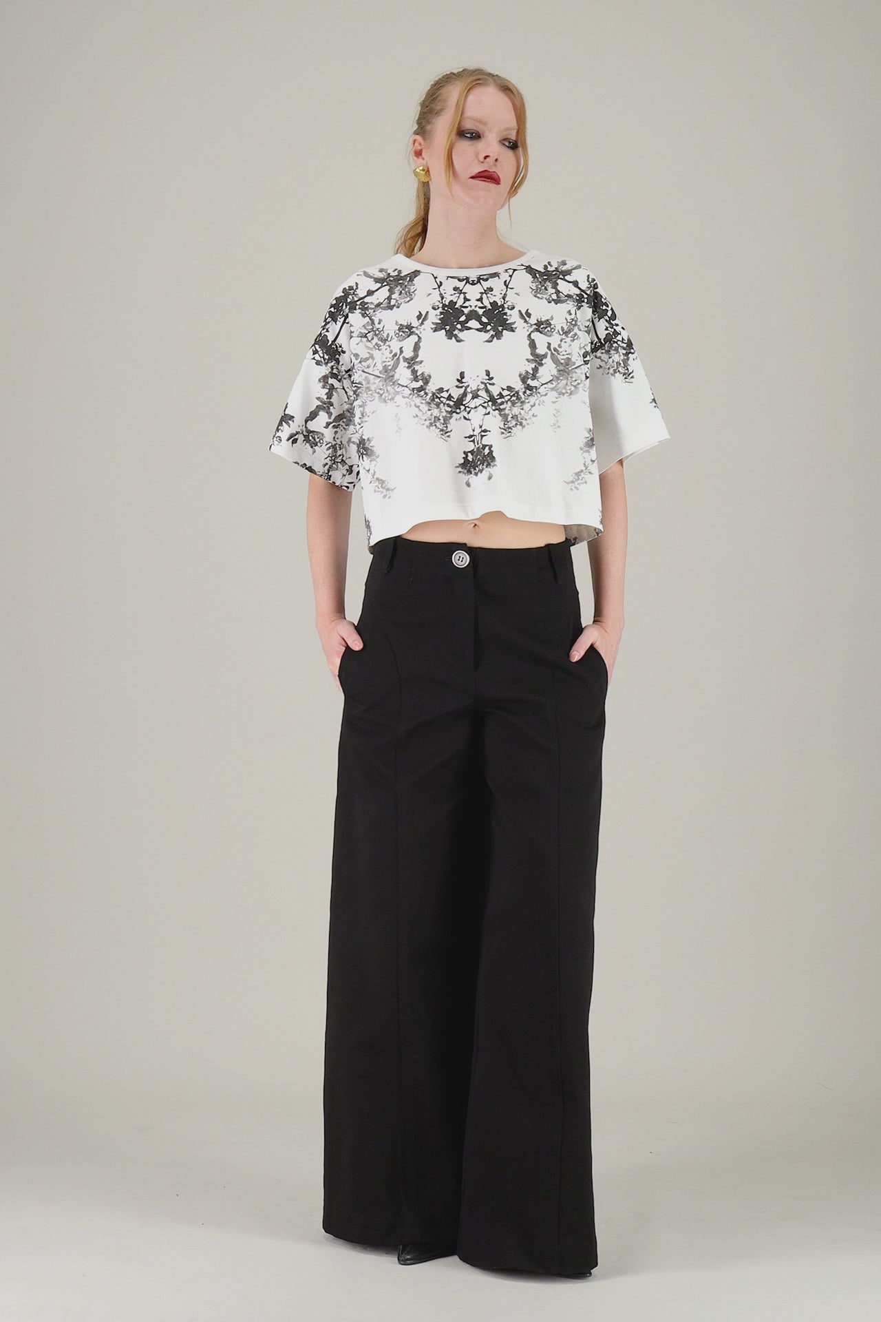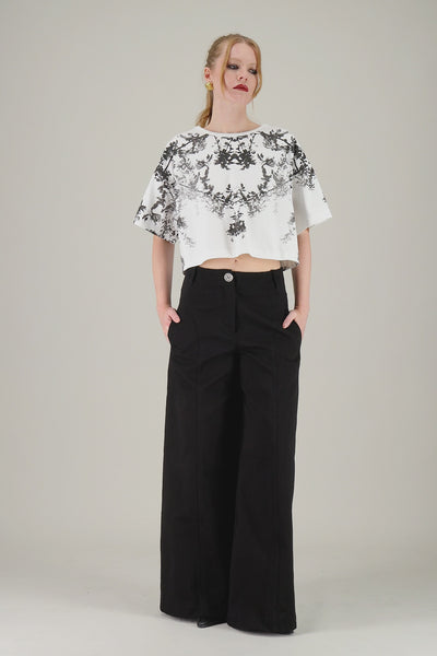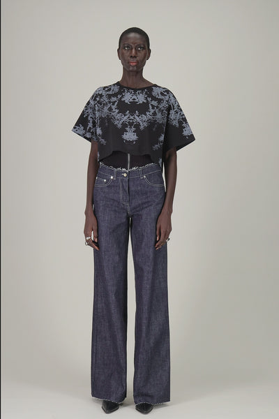 T-shirt boxy oversized crop con stampa ramage.
