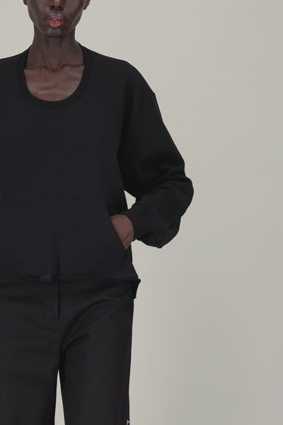 Felpa in cotone con inserti in seta trasparente e tasca grande frontale.